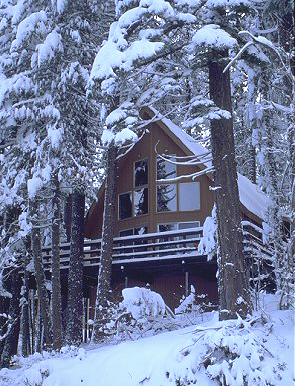Surrounded by sugar pines, this charming mountain A-frame has a wonderful