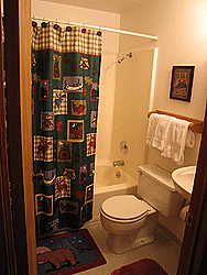 bathroom with a stall shower. This cabin is equipped with Dish Network