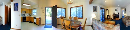 kitchen. The living room also opens to a cozy deck that overlooks